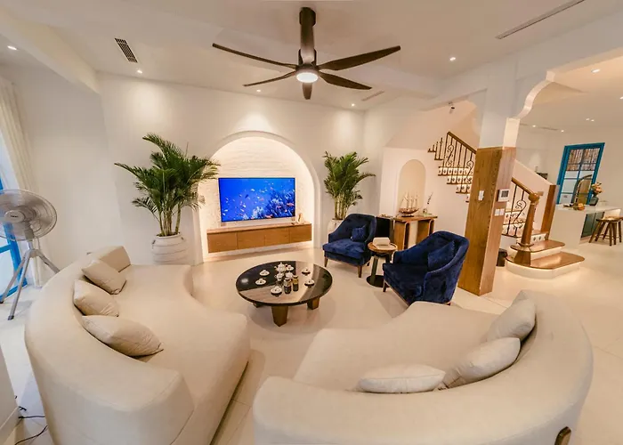 A 110 m²-es La Perla Seaside Retreat 6Br Apartman Hạ Long-öböl kényelmes közelségben van olyan városi látnivalókhoz, mint az 5 percnyi sétára található Dao Reu. A teraszt kínáló 6 hálószobás apartman továbbá úszómedencével várja a vendégeket, hogy tökéletes kikapcsolódásban legyen részük.